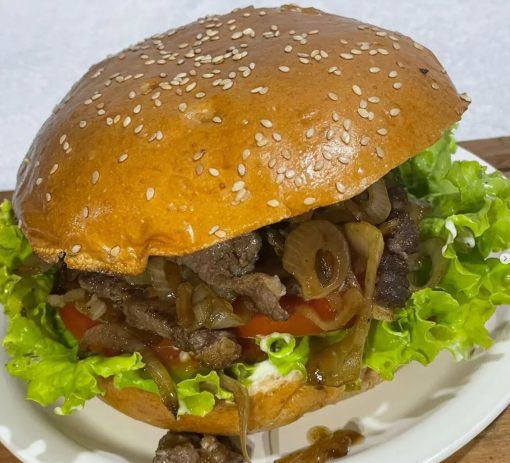 Cebolas caramelizadas, trazendo um toque adocicado e sabor marcante